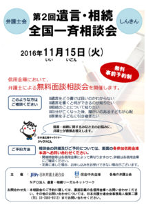 2016年11月15日(いい遺言の日)に「遺言・相続全国一斉相談会」(面談相談)を各地の信用金庫で開催いたします。