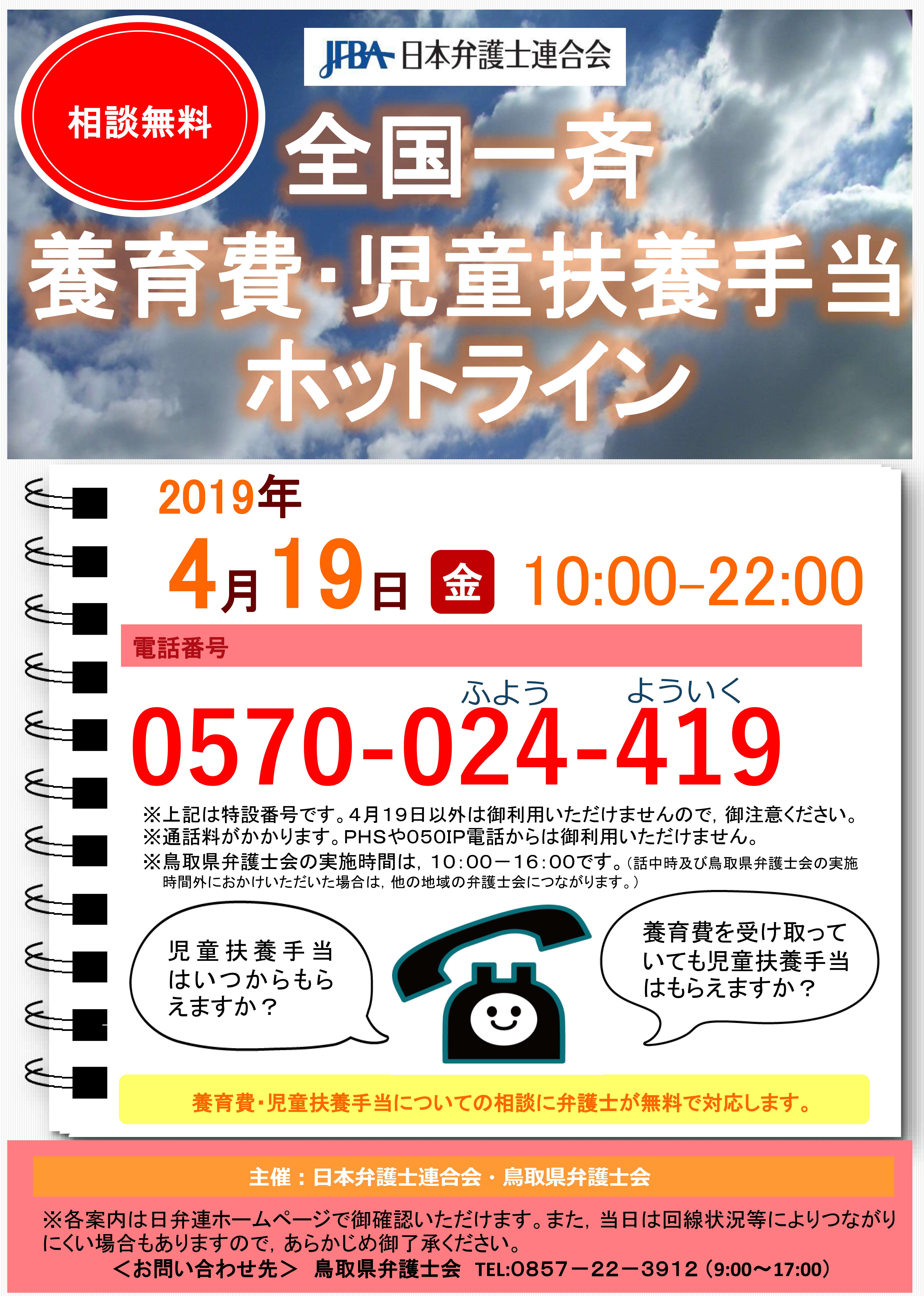 そこで、日本弁護士連合会と全国の弁護士会との共催により、電話相談会を実施することになりました。