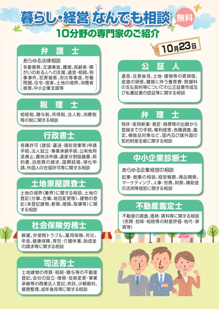 「暮らし・経営 なんでも相談会」開催のお知らせ(10月23日開催)